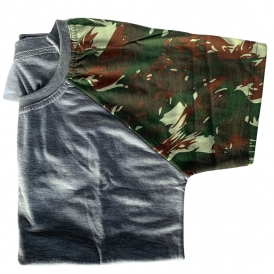 cor da Blusa: Cinza mescla Cor da manga: camuflado Quartel Modelo: Meia manga